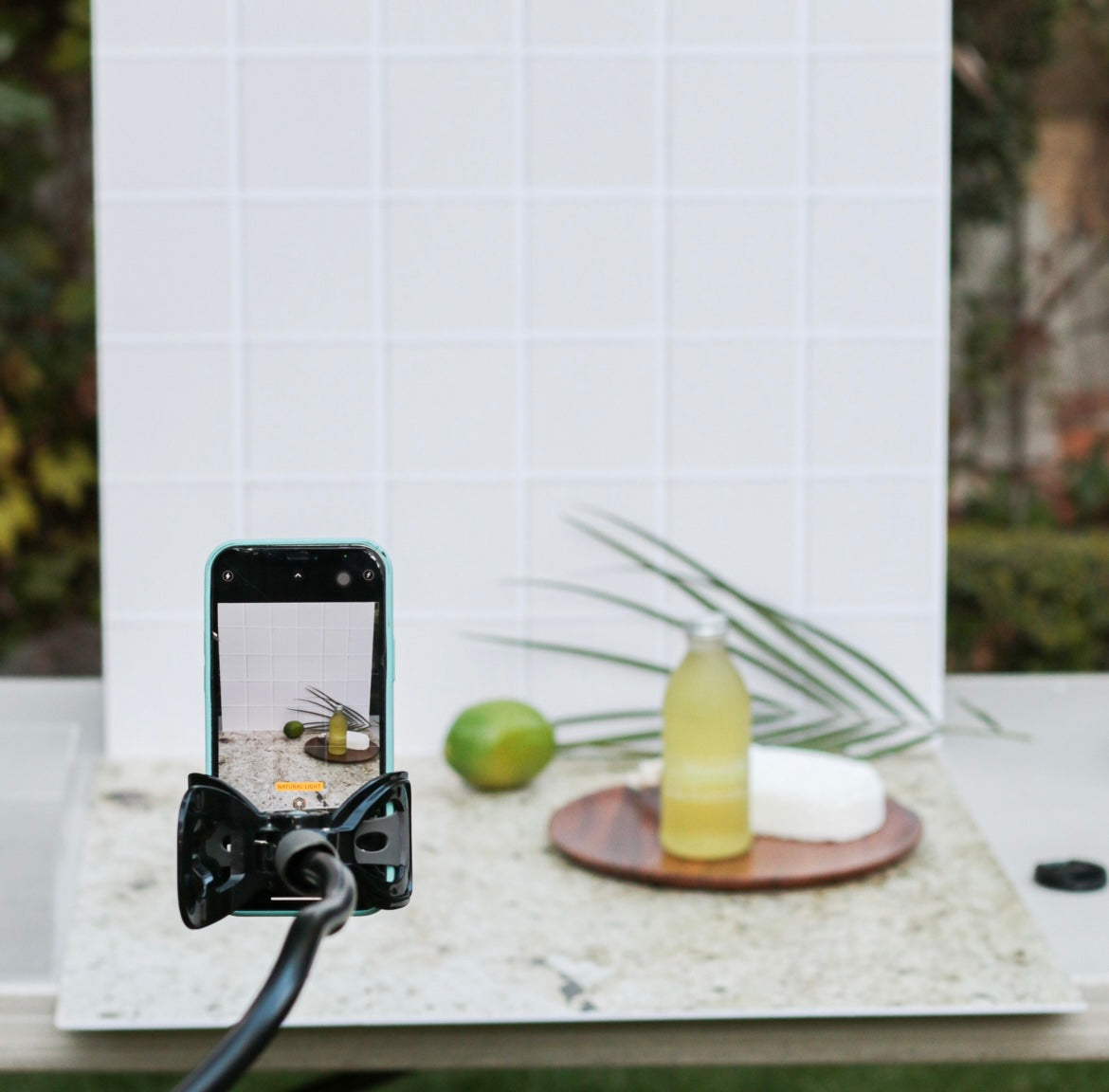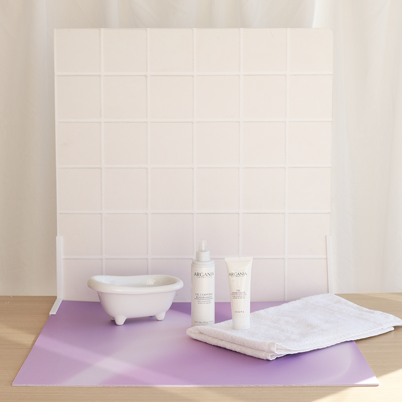 Usa 2 fondos y los soportes en L para armar tu estudio. Intercambia base y pared y experimenta con diferentes looks. (Recuerda agregarlos a tu carrito.)