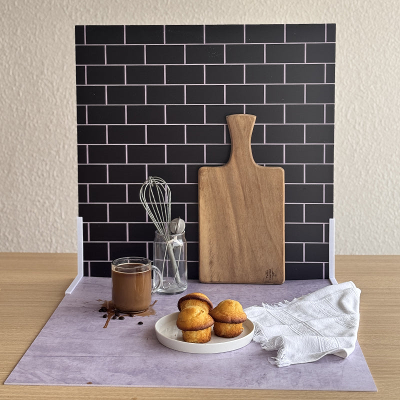 Usa 2 fondos y los soportes en L para armar tu estudio. Intercambia base y pared y experimenta con diferentes looks. (Recuerda agregarlos a tu carrito.)