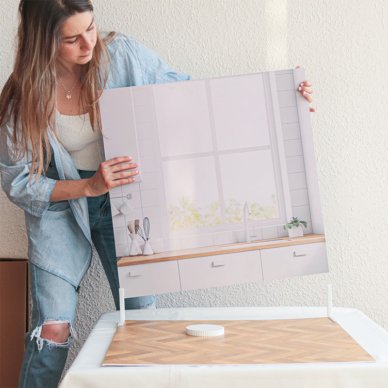 Usa 2 fondos y los soportes en L para armar tu estudio. Intercambia base y pared y experimenta con diferentes looks. (Recuerda agregarlos a tu carrito.)