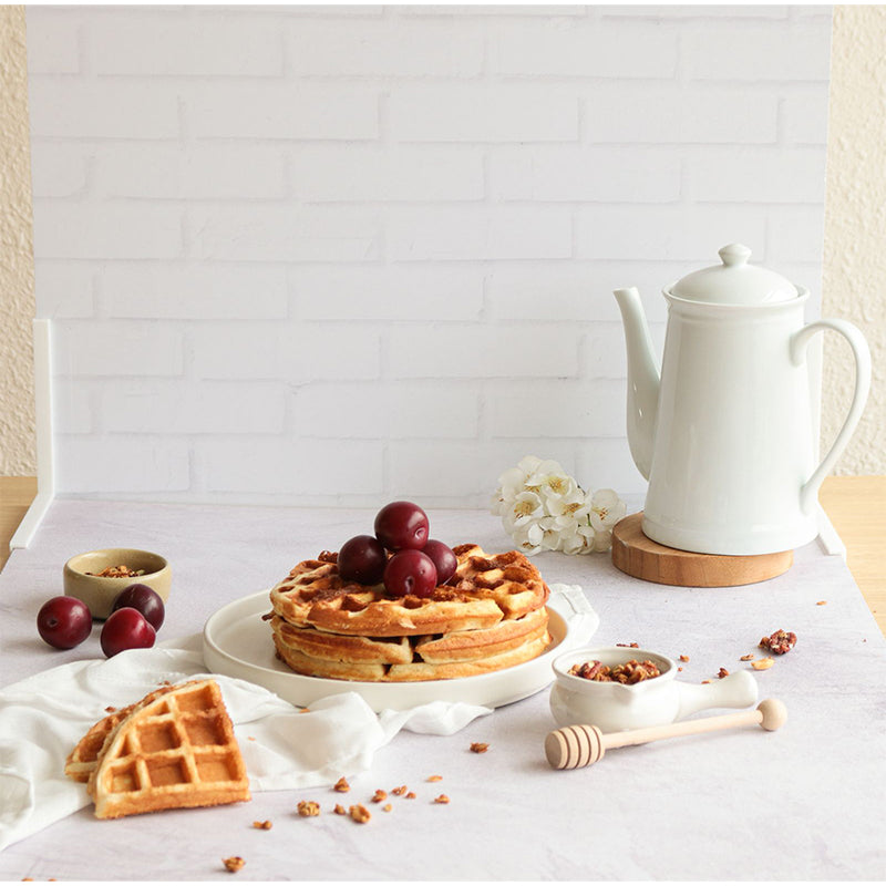 Usa 2 fondos y los soportes en L para armar tu estudio. Intercambia base y pared y experimenta con diferentes looks. (Recuerda agregarlos a tu carrito.)