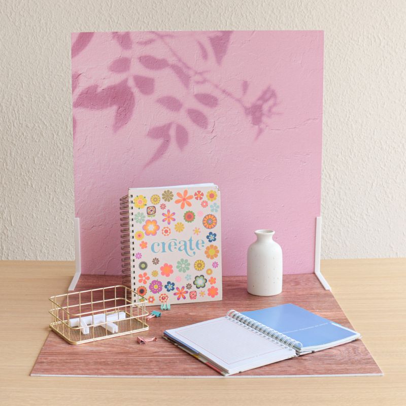 Usa 2 fondos y los soportes en L para armar tu estudio. Intercambia base y pared y experimenta con diferentes looks. (Recuerda agregarlos a tu carrito.)