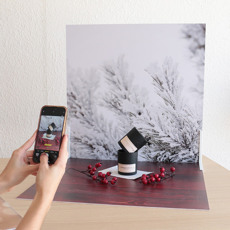 Usa 2 fondos y los soportes en L para armar tu estudio. Intercambia base y pared y experimenta con diferentes looks. (Recuerda agregarlos a tu carrito.)